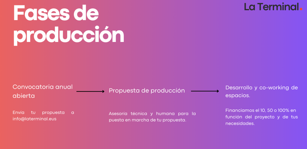 En la Terminal ofrecemos una oportunidad única para la producción de obra de pequeño, mediano y gran formato en torno a las artes en vivo, con espacios de trabajo, escenarios y una residencia artística con todas las facilidades.